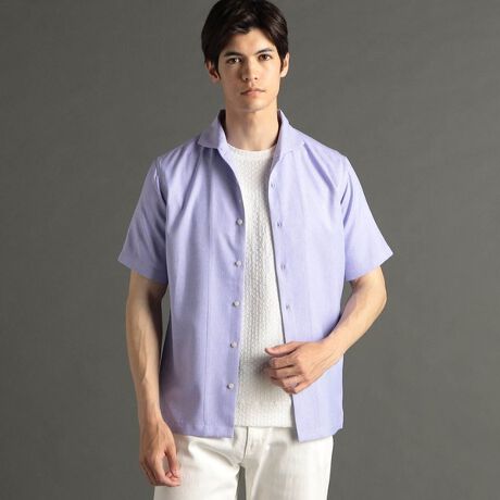 上品な衿の返りを演出するイタリアンカラー半袖シャツ。