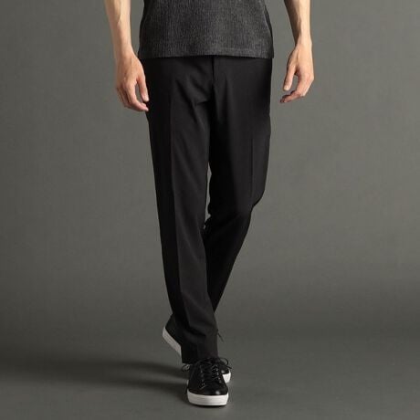 ムッシュニコル定番スラックスをベースに、ウエストベルトの後ろ見頃側のみギャザー仕様にアップデート。程よく身体にフィットするアクティブパンツ。
