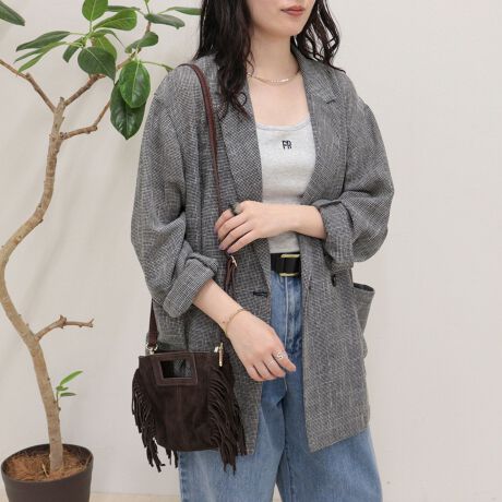 ・サイドにあしらわれたフリンジがコーディネートにアクセントをプラス