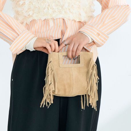 動きのあるデザインが魅力のフリンジミニバッグ