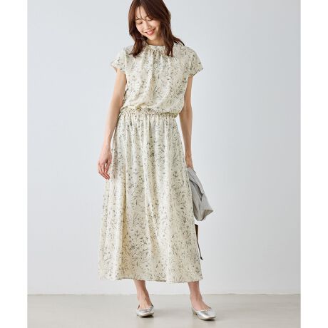 ・一枚で着映えする、小花柄を主役にしたフェミニンな装い。