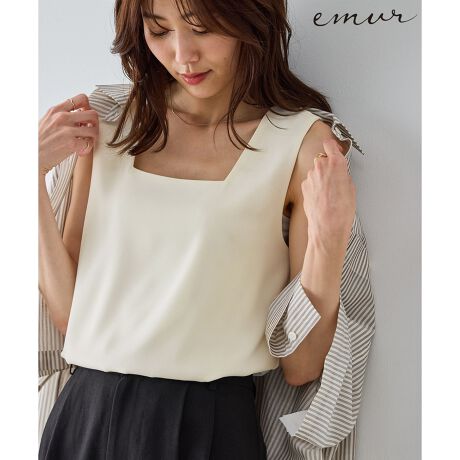 ・デコルテをシャープに、首元をすっきりと見せるスクエアネック。