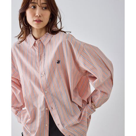 ・胸元のポニー刺繍が、ストライプに映えるトラッドなアクセント。