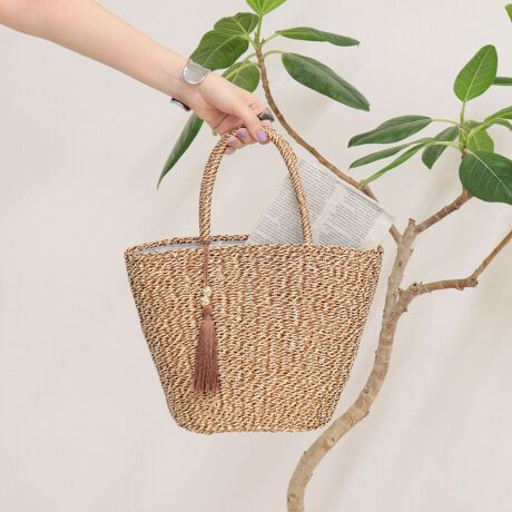 ・メタリックフィルムとペーパーMIXの落ち着いた雰囲気のカゴバッグ