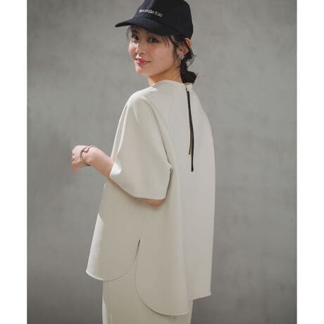 ■デザインヒップが隠れる前後差丈と、シャツテールデザインがポイントの万能プルオーバー。深めのサイドスリットがシルエットにメリハリを持たせ、スタイルアップを叶えます。テープ付きの後ろジップは着脱もしやすく、後ろ姿にアクセントを加えてくれます。お袖周りがゆったりとしている5分丈スリーブで、腕周りもしっかりとカバー。ボリューム感のあるオーバーシルエットで、一枚でも着映えます。同素材のIラインスカート(SKUMLM0460)とのセットアップもおすすめです。