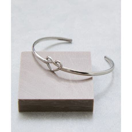 ハートとノットモチーフを組み合わせた、程よい存在感のバングル。華奢すぎず程よいボリューム感で、手元にアクセントをプラスしてくれます。シンプルなデザインなので、単品使いはもちろん他のブレスレットやバングルとのレイヤードも楽しめるアイテムです。