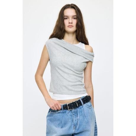 【LAYERED OFF SHOULDER TOP/ロウスラング ストレート】■ポイント&ディテールタンクトップとワンショルダートップスのレイヤードが楽しめるセットトップス。ニュートラルながらもトレンド感のある配色が目を惹きます。それぞれ単品でも活躍する汎用性の高さも魅力。肌あたりの良い柔らかなカットソー素材を使用し、ワンショルダーのアシンメトリーなカッティングが抜け感をプラスします。■スタイリングデニムに合わせてヘルシーに、Iラインスカートと合わせて都会的に。ジャケットのインナーとしても映える一枚です。