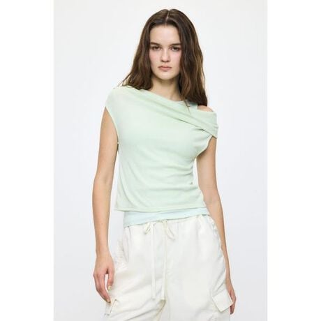 【LAYERED OFF SHOULDER TOP/ロウスラング ストレート】■ポイント&ディテールタンクトップとワンショルダートップスのレイヤードが楽しめるセットトップス。ニュートラルながらもトレンド感のある配色が目を惹きます。それぞれ単品でも活躍する汎用性の高さも魅力。肌あたりの良い柔らかなカットソー素材を使用し、ワンショルダーのアシンメトリーなカッティングが抜け感をプラスします。■スタイリングデニムに合わせてヘルシーに、Iラインスカートと合わせて都会的に。ジャケットのインナーとしても映える一枚です。