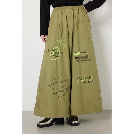 ■ポイント大人気パラシュートパンツの新デザインが登場です。シルエットはそのまま活かし、遊び心溢れる刺繍が新たにデザインされています。RODEOならではの配色にも注目です。■ディテールボリュームたっぷりなシルエットは、裾のアジャスターで調整が可能です。ボディラインを拾わず、ストレスフリーな穿き心地でどんな場面でも活躍してくれるアイテムです。■スタイリングラクガキ調の刺繍やたっぷりとしたシルエットがコーディネートの主役になるので、シンプルなトップスと合わせるだけでお洒落見えが叶います。刺繍カラーを拾って、トップスや小物とのカラーコーディネートもおすすめです。■生地ハリ感があり、さらっとした風合いのダンプループ素材を使用しています。光沢糸を使用した刺繍がポイント。刺繍カラーには蛍光カラーを使用しています。■透け感:なし■裏 地:なし■伸縮性:なし■光沢感:なし[注意事項]※画像の商品はサンプルです。実際の商品と仕様、加工が若干異なる場合があります。※画像の商品は光の照射や角度、お使いのモニター環境により、実物と色味が異なる場合がございます。※着用、お取り扱いの際は、アテンションタグをご確認ください。