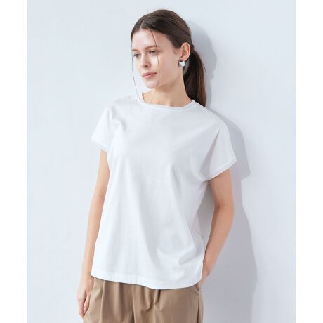 [型番:291198]さりげなく華やぐチュールT首元にあしらったチュールがポイントの上品なTシャツ。シンプルな中に女性らしさをプラスした、取り入れやすいデザインです。接触冷感、吸水速乾機能付きで、暑い季節も快適に着用可能。ジャケットやカーディガンのインナーとしても使いやすく、きれいめからカジュアルまで幅広く活躍します。。