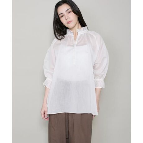 コットンシルクギャザーフリルブラウス