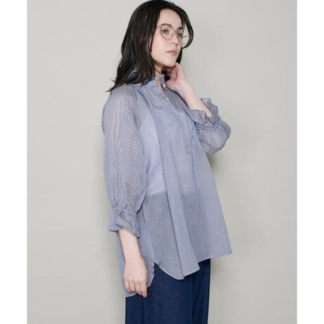 ■デザイン衿元のフリルディテールが印象的な五分袖のギャザーブラウス。前立てには華奢なくるみドット釦を使用することでヴィンテージ感のある雰囲気に仕上げました。袖口のキャンディースリーブはゴムイン仕様で動きやすく、適度なハリ感のあるシアー素材を使用することで立体感があり、モードな印象のブラウスです。■素材シアー感と涼しげな表情が特徴の綿シルク素材。SiIlkの配合量が多くなりすぎない適度な割合にとどめ、コットンの風合いも十分感じられる高級感ある素材に仕上げました。適度なハリ感があり肌離れもよく、シルク混用率が比較的存在感を持ちつつも、手洗い可能な扱いやすさもメリットです。・水洗い可・フロントスナップボタン同素材のフリルデザインブラウス品番:10-62182026■サンプル撮影商品画像の商品はサンプルです。実際の商品とはサイズや色味、素材、デザイン等の仕様が若干変更になる場合がございます。■照明の関係により、実際の製品とは色味が違って見える場合があります。またパソコン・スマートフォンなどの環境により、若干製品と画像のカラーが異なる場合もございます。■サイズ表記はあくまで目安となります。