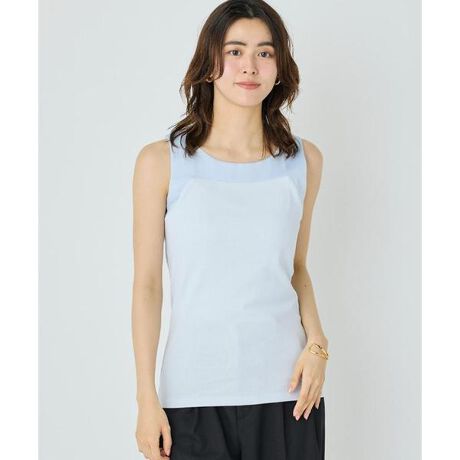 サテン切り替えタンクトップ《スビン綿MIXフライス》