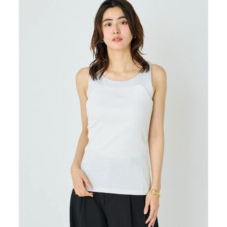 ■デザインサテン地の切り替えを施したタンクトップ。安心感のある衿開きと肩幅に拘り、着心地よ良いサイズ感に仕上げています。すべりの良い素材感、胸元のサテンがアクセントになり、シャツのインナーはもちろん、夏場のカットソーとのレイヤードスタイルに最適なアイテムです。■素材インドのスビン綿を使用したフライス素材。インドのSUVIN(スビン)綿は、繊細で、豊潤な油脂分によるなめらかな肌触りが特長。インドに元来ある超長綿花 SUJATHA(スジャータ)と 海島綿(St.VINCENT) が交配されて出来た希少価値が高い超長綿。 繊維長が長く、繊度が細く、強度があり、上品な光沢が特徴です。伸縮性のある、程良い肉感のソフトなフライス組織の素材に、更に、ローズぺトール加工を施すことで抜群の肌触りの生地に仕上げました。・水洗い可■サンプル撮影商品画像の商品はサンプルです。実際の商品とはサイズや色味、素材、デザイン等の仕様が若干変更になる場合がございます。■照明の関係により、実際の製品とは色味が違って見える場合があります。またパソコン・スマートフォンなどの環境により、若干製品と画像のカラーが異なる場合もございます。■サイズ表記はあくまで目安となります。