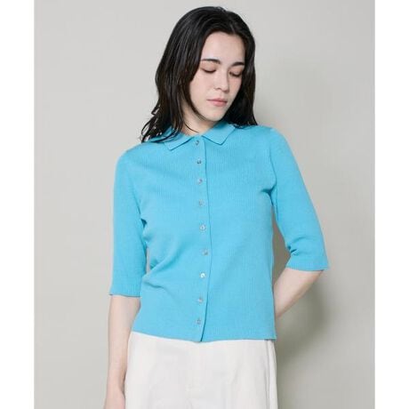 ■デザインすっきり見えしながら身体のラインを拾い過ぎないサイジングと表面感のあるリブ編地にこだわったポロ襟ニット。大人の女性が取り入れやすい小さな襟がポイントです。前釦の開け具合を調整しネックラインや裾の抜け感を演出できます。もちろんカカーディガンとしてもお使い頂けます。コンパクトなサイズ感でボリュームがあるボトムスとも好相性。ポロ襟&ハーフスリーブデザインで1枚でトレンドらしさを取り入れられるマストハブアイテム!■素材コットンとナイロンの糸を少し表情を持たせる特殊撚糸加工しており、細番手ならでは清涼感と目がきっちりと揃い過ぎないほどよくカジュアル感のあるいいトコ取りの素材。軽量に仕上がり、吸汗性と透湿性にも優れています。・水洗い可・フロントボタン■サンプル撮影商品画像の商品はサンプルです。実際の商品とはサイズや色味、素材、デザイン等の仕様が若干変更になる場合がございます。■照明の関係により、実際の製品とは色味が違って見える場合があります。またパソコン・スマートフォンなどの環境により、若干製品と画像のカラーが異なる場合もございます。■サイズ表記はあくまで目安となります。