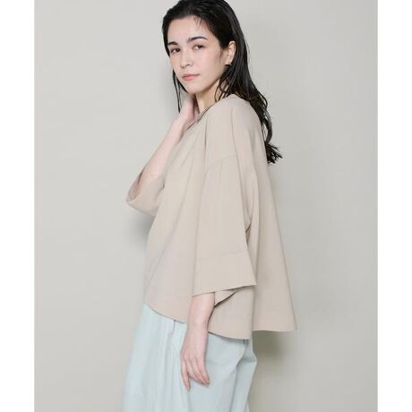 ■デザインルーズなシルエットで仕上げたプルオーバーブラウス。オーバーサイズのカフスやゆったりとしたシルエットでリッチに、七分袖にする事で軽やかに仕上げました。マチを付けたボートネックはポイントでありながらインナーを見せない着心地の良さも備えています。揺らぎ感のあるヘムラインがオーバーBLとしてのデザインを完成させています。■素材シックアンドシンの染色表現による麻の適度な節の視認性と、肌離れの良さが特徴の麻調合繊素材です。涼しい着用感、シワになりにくいなど実用面でも優れ、機能面ではウォッシャブル、速乾性など、デイリー使いに活躍する素材です。・水洗い可・背中ジップ■サンプル撮影商品画像の商品はサンプルです。実際の商品とはサイズや色味、素材、デザイン等の仕様が若干変更になる場合がございます。■照明の関係により、実際の製品とは色味が違って見える場合があります。またパソコン・スマートフォンなどの環境により、若干製品と画像のカラーが異なる場合もございます。■サイズ表記はあくまで目安となります。