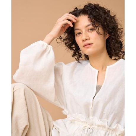 ■デザイン羽織りとしても活躍してくれる前開きブラウスジャケット。身頃にたっぷりとギャザーを寄せた表情のあるルックスで、纏うだけでサマになるのが嬉しい。ボリューム感のあるパフスリーブとウエストマークのメリハリシルエットやフロントで結ぶ華奢なリボンなど、フェミニンなエッセンスもぎゅっと凝縮しています。■素材トルコのテキスタイルメーカーACAR社の生地を使用しております。リネンとレーヨン混にすることでリネンが高混率でありながらカジュアルに見え過ぎず、適度な光沢感のある生地感が魅力の1着。ドライで肌離れも良い風合いにすることで夏でも快適に着ていただくことが可能です。 ※ 強タンブラー加工の為ランダムな織りジワが発生しますが、素材特性のため予めご了承ください。・水洗い可■下げ札サイズ表記2=(M/9号)■サンプル撮影商品画像の商品はサンプルです。実際の商品とはサイズや色味、素材、デザイン等の仕様が若干変更になる場合がございます。■カラーについては、可能な限り実際の商品に近いカラーで撮影をおこなっておりますが、照明の関係により実際の製品とは色味が違って見える場合があります。またパソコン・スマートフォンなどの環境により、若干製品と画像のカラーが異なる場合もございます。現物と画像のカラー差異については返品理由となりませんので、予めご了承ください。■サイズ表記はあくまで目安となります。