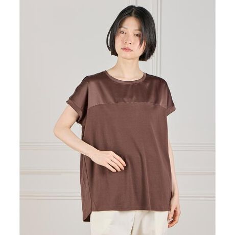 ■デザインサテン切り替えのドルマンプルオーバー。二の腕、ボディラインが出にくいサイズ感に拘りました。サテン地の切り替えや、バックスタイルのタック、ニュアンスのあるヘムライン等のディテール使いにより、着心地の良さと、表情のあるデザイン性を併せ持ったデザインTシャツに仕上げました。■素材インドのスビン綿を使用したフライス素材。インドのSUVIN(スビン)綿は、繊細で、豊潤な油脂分によるなめらかな肌触りが特長。インドに元来ある超長綿花 SUJATHA(スジャータ)と 海島綿(St.VINCENT) が交配されて出来た希少価値が高い超長綿。 繊維長が長く、繊度が細く、強度があり、上品な光沢が特徴です。伸縮性のある、程良い肉感のソフトなフライス組織の素材に、更に、ローズぺトール加工を施すことで抜群の肌触りの生地に仕上げました。・水洗い可■サンプル撮影商品画像の商品はサンプルです。実際の商品とはサイズや色味、素材、デザイン等の仕様が若干変更になる場合がございます。■照明の関係により、実際の製品とは色味が違って見える場合があります。またパソコン・スマートフォンなどの環境により、若干製品と画像のカラーが異なる場合もございます。■サイズ表記はあくまで目安となります。