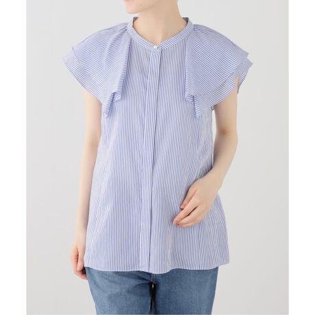 フリルスリーブがさりげなく二の腕をカバーしてくれる、上品で女性らしいブラウス。