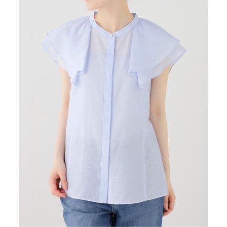フリルスリーブがさりげなく二の腕をカバーしてくれる、上品で女性らしいブラウス。