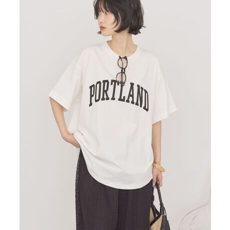 大人カジュアルにぴったりのアーチロゴプリントTシャツ。程よい肉感の綿100%素材で透けにくく、デイリーに使いやすい一枚です。ゆったりめのシルエットながら、ラウンドカットの裾ですっきりとした腰まわりに見せられます。アウトで細身ボトムと合わせても、フロントをウエストにかけてインすればワイドボトムとも好バランスに。幅広い着こなしが楽しめる万能Tシャツです。透け感[なし]