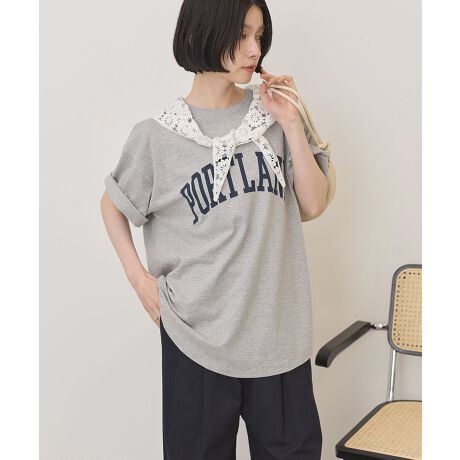大人カジュアルにぴったりのアーチロゴプリントTシャツ。程よい肉感の綿100%素材で透けにくく、デイリーに使いやすい一枚です。ゆったりめのシルエットながら、ラウンドカットの裾ですっきりとした腰まわりに見せられます。アウトで細身ボトムと合わせても、フロントをウエストにかけてインすればワイドボトムとも好バランスに。幅広い着こなしが楽しめる万能Tシャツです。透け感[なし]