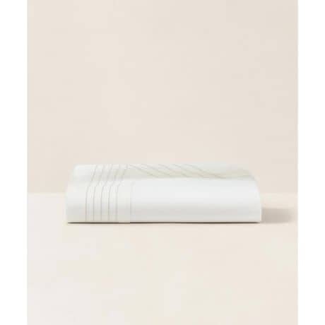 メンズのクラシックなハンカチーフにインスパイアされたシーツ。環境負荷に配慮し栽培されたコットンを使用。624スレッドカウントで織り上げた光沢のある生地で丁寧に仕立て、繊細な刺繍をあしらったアイテム。なめらかでさりげない光沢を生み出す朱子織を採用して、エレガントなドレープとこの上なく柔らかな手触りを実現・312番手双糸を使うことで実現した、624スレッドカウントの環境負荷に配慮し栽培されたコットンの朱子織 / OEKO-TEX(R) MADE IN GREEN認証・フラットシーツに刺繍入り、フロントと背面にV字のコーナー、共生地の折り返し・このコレクションのフラットシーツは、オーガニック サティーン ボックスシーツとコーディネート可能※商品の色味は、光のあたり具合など諸条件により色感が多少異なって見える場合がございますので予めご了承下さい。 【素材】・オーガニックコットン100% 装飾部分を除く【生産国】バーレーン【採寸】約 180cm x約 280cm