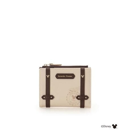 ◇Samantha Thavasa(サマンサタバサ)の「ミッキー&ミニー」TRAVELコレクション 折財布「ミッキーマウス」「ミニーマウス」と一緒に旅を楽しめるトラベルシリーズが登場。【デザイン】ベーシックなベージュカラーに艶ありのスタンプモチーフのプリントとベルトデザインが映えるアイテム。まるでキャリーケースのようなおしゃれなデザインで所々に「ミッキー」のシルエットの金具がついていて、まるで隠れ「ミッキー」のような遊び心あるデザイン。二つ折りの薄型なのでバッグに収納の時もかさばらずコンパクトな仕様です。【素材】マットな手触りの牛革を使用しています。
