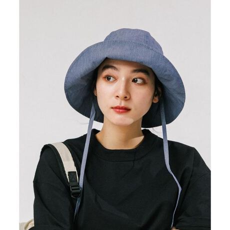 オーガニックコットンとコーデュラナイロンの高密度シャンブレー素材を使用。シンプルなチューリップハット型で畳んでの収納が可能なため持ち運びにも便利なデザインになっております。UVカットはもちろんのこと高耐久性のためマシンウォッシャブルが可能。裏メッシュ仕様、吸水速乾機能付きのスベリを使用していますので真夏のデイリーユースでも活躍できます。後ろに刻みを入れたデザインで髪の毛を後ろで束ねた時に被りやすくしました。ブリム前が上げやすくなっていますので変化をつけて楽しめます。サイズ調節可能で風飛ばし防止のリボン付きです。