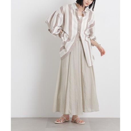 コットンポリエステルのボイル素材で仕立てたフレアスカート。程よい透け感と、柔らかくシャリ感ある生地感がポイント。同素材展開のブルゾンとのセットアップスタイルもおすすめです。