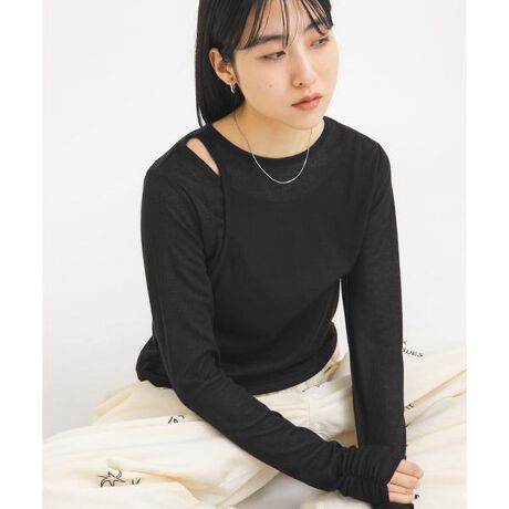 程よい透け感のある肌触りの良い素材を使用したトップス。アシンメトリーデザインになっており、右肩部分が肌見えすることで抜け感を叶えます。袖口はギャザーになっており、メイン使いとしても、インナーとしても重宝します。