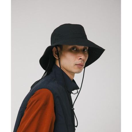 調整パーツ付きの首紐は着脱可能仕様。風の強い日やアクティブなシーンでも安定したフィット感を実現します。さらに、取り外し可能な日除けパーツを搭載し、シーンやスタイリングに応じたアレンジが可能。強い日差しから首元をしっかりガードします。
