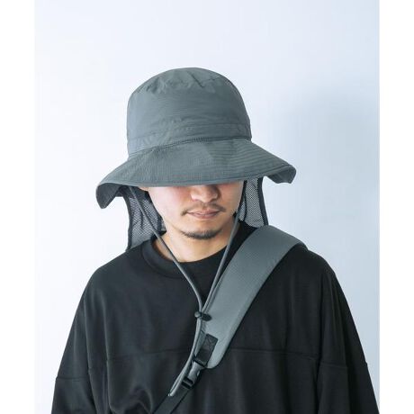 調整パーツ付きの首紐は着脱可能仕様。風の強い日やアクティブなシーンでも安定したフィット感を実現します。さらに、取り外し可能な日除けパーツを搭載し、シーンやスタイリングに応じたアレンジが可能。強い日差しから首元をしっかりガードします。