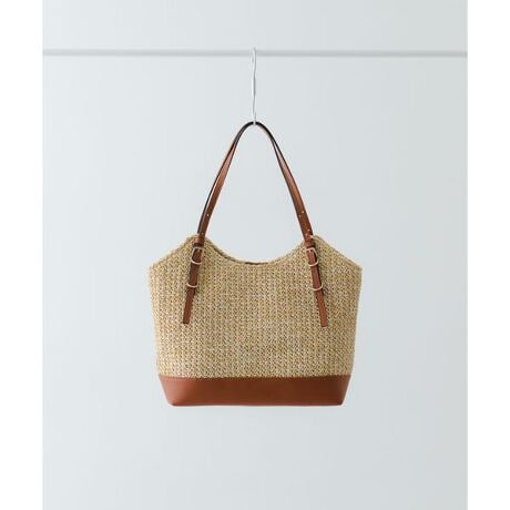 異素材で組み合わされたデザインが特徴のトートバッグ。底部分やハンドルにレザー調の素材をあしらうことで、ナチュラルになりすぎず上品で都会的な雰囲気に仕上げました。