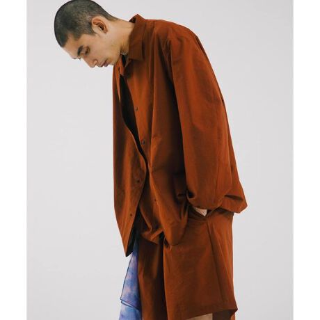 同素材で展開しているジャケットをベースに衿を排したノーカラーデザイン。ミニマルで軽やかな印象に仕上げています。