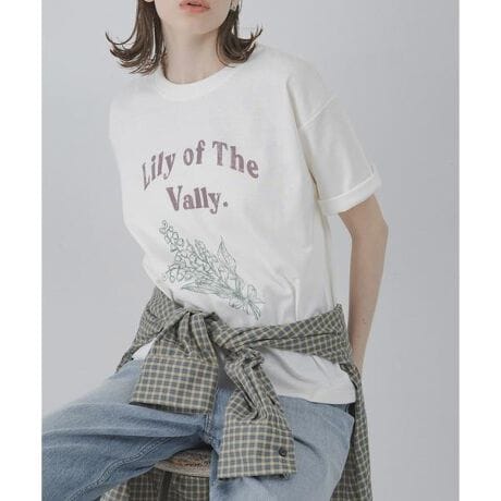 華やかな色使いのすずらんモチーフのプリントがスタイリングのアクセントに◎