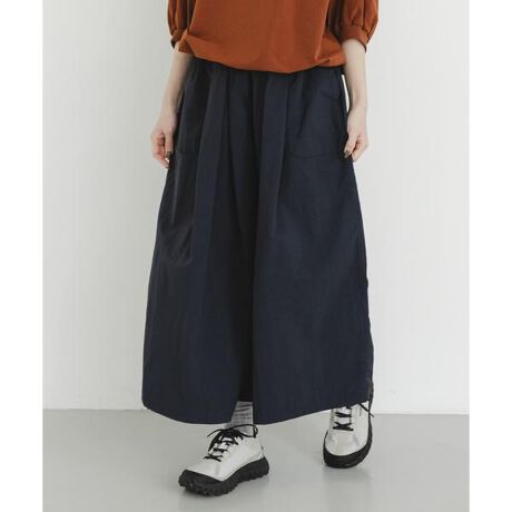 フロントに入れた深いタックに加えスカートのようなワイドシルエットのパンツ。サイドポケットにはメッシュのマチが付いてEKALらしいアウトドア仕様になっています。タウンユースにもピッタリでアクティブなライフスタイルとお洒落を両立させるアイテムに仕上がっています。コンパクトなトップス合わせはもちろんルーズなトップスと合わせて、カジュアルにまとめていただくのもお勧めです。