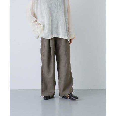 上品な素材がカジュアルながらもきちんとした印象のアイテム。ウエストのタックが立体感を生み、ヒップやもも周りに余裕がありながらもスッキリとしたシルエットです。リネン特有の落ち感がリラクシーなムードをプラス。シンプルにブラウスやカットソーはもちろん、ニットやスウェットとも好相性◎チュニック等丈の長いアイテムとのレイヤードスタイルにもおすすめです。