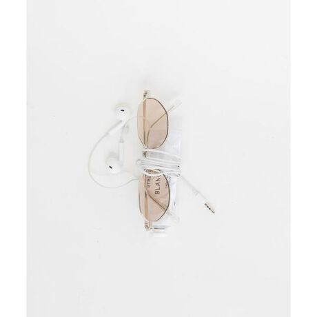 トレンドのメタルフレームを使用したサングラス。角のあるオーバル型、薄めのカラーレンズとクリアで印象が異なります。