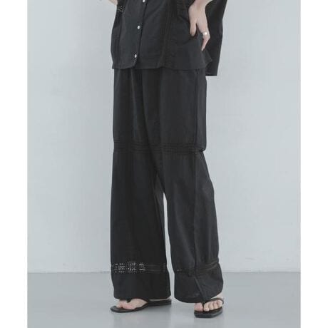 レース切り替えが目を惹くナチュラルな風合いが魅力のコットンパンツ