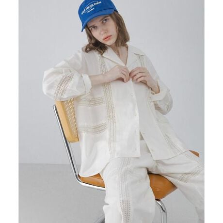 インド生産特有の柔らかでナチュラルな風合いの良いコットン素材に、ハンドクラフト風のレースを切り替えたデザインがポイントのジャケット感覚でも着用できるオープンカラーシャツ。