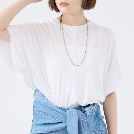センターに走るシーム(切り替え)と、ゆったりとしたワイドスリーブが、シンプルな無地Tシャツとは一線を画すこなれ感を演出します。