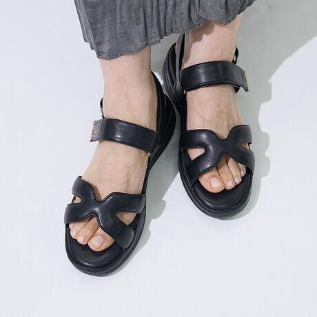 ・パフィーなストラップが足をしっかりホールドし、見た目と実用性を両立。