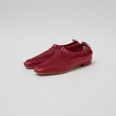 トレンドのメッシュ素材を取り入れた、軽やかな印象のシューズ。透け感のあるアッパーが足元に抜け感をつくり、シンプルな装いにも映える一足です。すっきりとしたフォルムで、フラットでも女性らしい雰囲気に仕上がります。取り外し可能なカラビナチャーム付きで、お好みで好きな場所に付け替えてアレンジが楽しめるのも他にない魅力です。