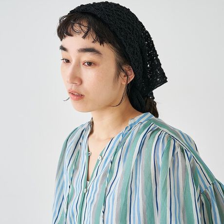 伸縮性のある編地で首元にはもちろん、腰巻きやヘアアクセサリーとしてもアレンジ可能。