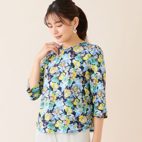 ◆美しい花柄でスタイル華やぐコットンTシャツ◆