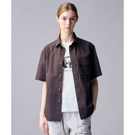 表面にコットン、裏面にポリエステルを配置した「プレーティング天竺」を使用しています。コットンのナチュラルな見た目と肌触りの良さを保ちつつ、ポリエステルの吸水速乾性を兼ね備えた、ブランドこだわりの快適素材です。
