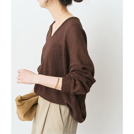 和紙を極細にスリットし、ポリエステルと撚り合わせた日本製のペーパーヤーンを使用。軽やかでドライな着心地が魅力のニットです。