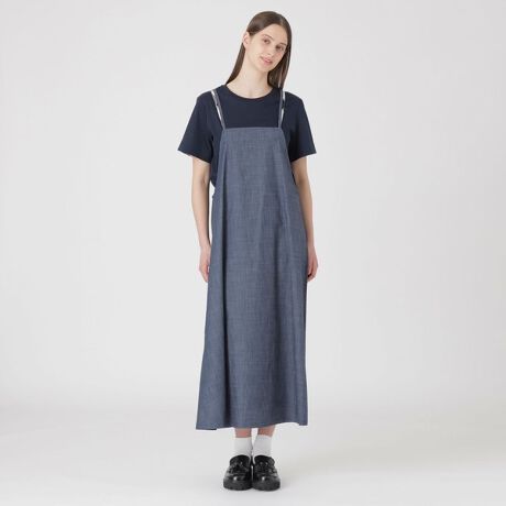 エプロン型キャミソールドレスとインナーTシャツのセットアイテム。