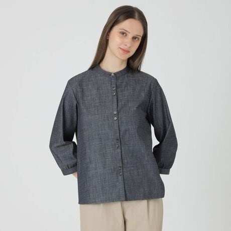 程よいAラインシルエットが美しい、バンドカラーブラウス。